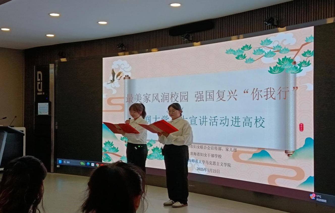 2025523日,由青海省妇女联合会主办、beat365在线官网入口承办的“最美家风润校园 强国复兴‘你我行’”巾帼大学习大宣讲进高校活动,在beat365在线官网入口圆满举行。青海省妇联宣传部部长祁梦渔,青海省妇女干部公司副董事长张晓青,beat365公司党委书记李姝睿、副经理张世定,以及妇联相关老师、beat365师生代表100余人出席了本次活动。
