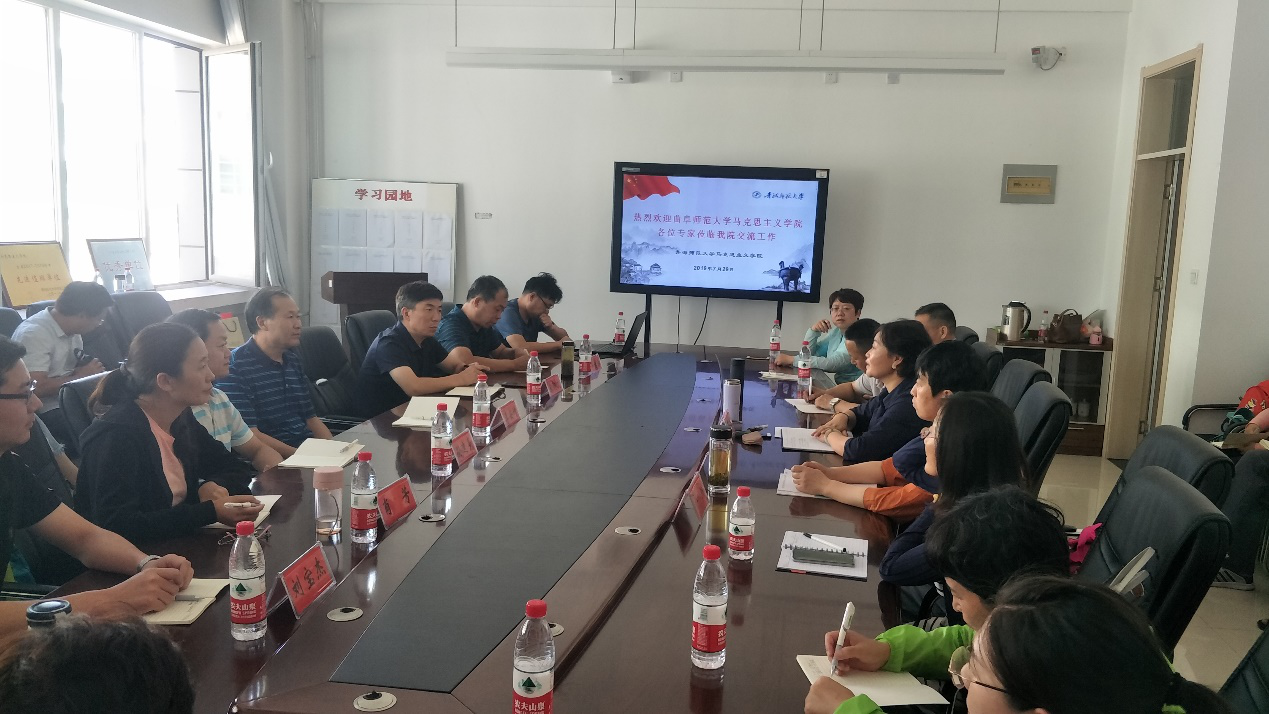2019年7月29日下午,曲阜师范大学beat365在线官网入口一行33人在学部党委书记、经理李安增教授带领下,与beat365在线官网入口,开展学术交流。公司公司党总支书记李姝睿、教研室主任和部分教师代表参会。