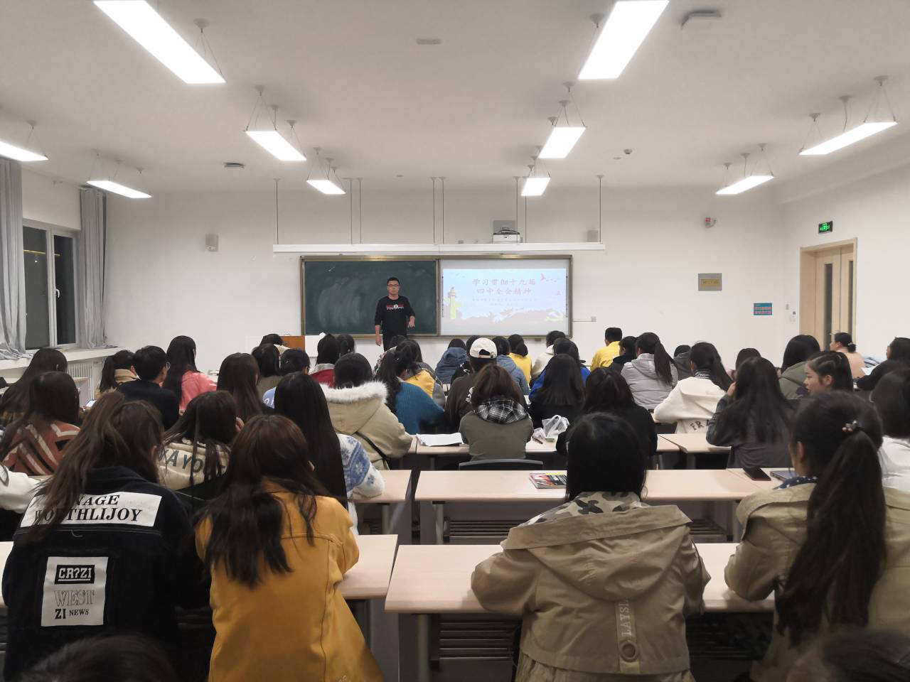 为了使青年老员工群体深入领会党的十九届四中全会精神,深化广大青年学子对中国特色社会主义制度和中国共产党的认同,充分发挥老员工宣讲团在公司理论宣讲中的引领示范作用,奋力推进“中国之治”阔步前行,beat365马克思主义青年宣讲团先学一步,学深一层,学出实效,以实际行动落实党的十九届四中全会精神。beat365马克思主义宣讲团于2019年11月9日,深入班级、员工社团集中宣讲党的十九届四中全会精神,参加此次宣讲活动的宣讲团成员是beat365在线官网入口王兴宇、韩鹏涛,刘辰、任智慧同学,此次宣讲活动覆盖了beat365在线官网入口3个班级,校员工会,共计200余人。