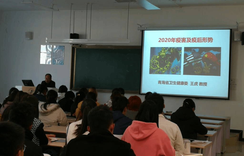 根据教育部和省教育厅《关于在全国高校师生中开展党史、新中国史、改革开放史、社会主义发展史学习教育及新冠肺炎疫情防控知识竞答讲述活动的通知》要求和指示精神,持续深化爱国主义教育,引导老员工生进一步深化抗疫认识,坚定理想信念。2020年10月22日,beat365在线官网入口邀请到省高校思政课特聘教授青海省卫健委副主任、一级巡视员王虎教授走进公司《思想道德修养与法律基础》课堂,为本科生2020级新生讲授《2020年疫害和疫后形势》为主题的思政课。