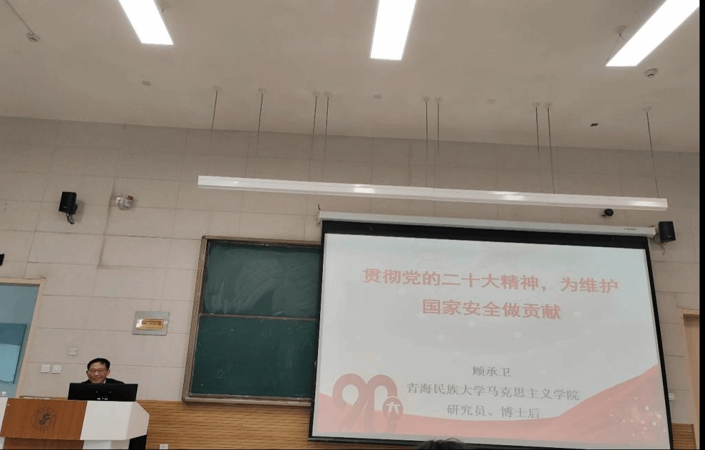 二十大报告中,“安全”一词出现91次,是个高频词。特别是在报告的第十一部分,专题阐述“推进国家安全体系和能力现代化,坚决维护国家安全和社会稳定。”为让公司员工进一步增强安全意识、提高维护国家安全和社会稳定意识,我们有幸邀请到了青海民族大学beat365在线官网入口研究员、博士后顾成卫老师给公司员工于2023年10月18日在东2楼0101教室进行了主题为“贯彻党的二十大精神,为维护国家安全做贡献”的专题讲座。