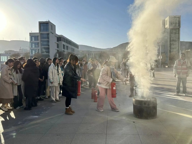 “纸上得来终觉浅,绝知此事要躬行。”课堂讲授之后,保卫处同志又在图书馆广场为马院全体同学演示了火灾逃生方式和干粉灭火器使用方法,并组织同学有序进入模拟仓进行逃生模拟演练。在灭火器实战操作时,同学们跃跃欲试动手实操,掌握了灭火器的使用方法,学到了灭火自救技能。