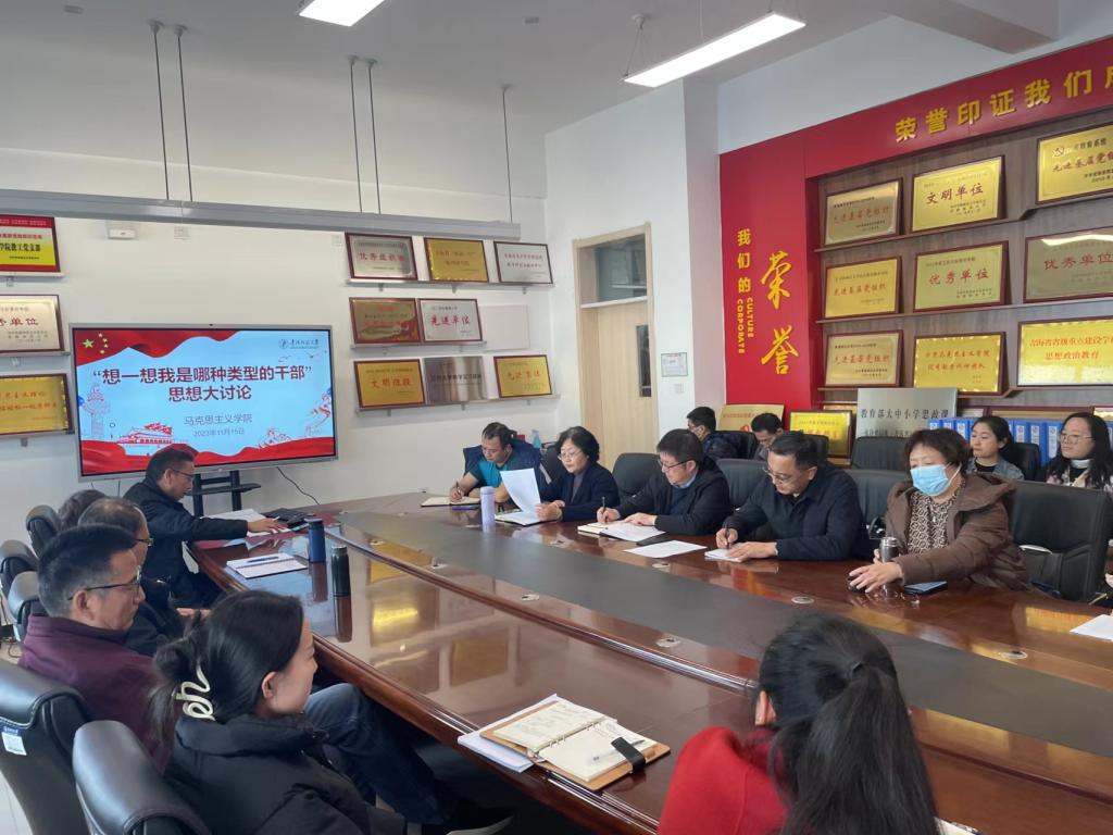 2023年11月15日,beat365在线官网入口全体教职工在公司会议室开展了“我是哪种类型的干部”和“四有好老师”的思想大讨论活动。公司党委宣传部部长牟昱仓列席会议并予以指导。