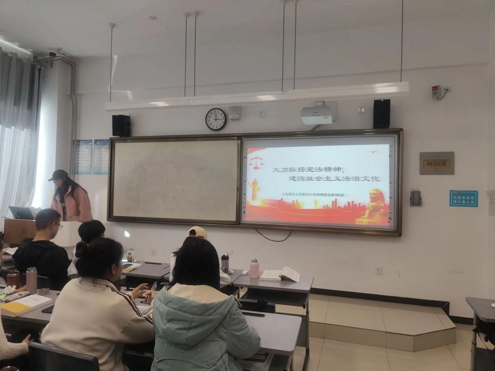 紧接着,各班班主任向同学们介绍了如何在日常生活中运用宪法来维护自己的权益。本次班会讲解内容丰富、深入浅出,让同学们更好地理解了宪法的内涵和价值。演示环节则通过具体的实例,让同学们更加直观地了解了宪法的具体应用。讨论环节则鼓励同学们积极发表自己的看法,增强了同学们对宪法的理解和认识。此外,各班班主任还强调了宪法在维护国家稳定、保障人民权益方面的重要作用,让同学们认识到宪法不仅是国家的根本大法,更是每个人应该遵守的法律准则。