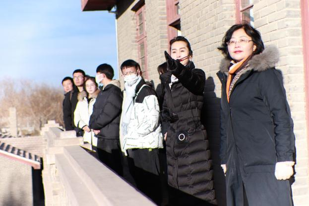 将军楼公园“大思政课”实践教育基地负责人卢海霞用了三个小时,详细讲解了以慕生忠为代表的青藏公路建设者的感人事迹,“将军楼”所蕴含的“两路精神”。可歌可泣的英雄事迹感染了在场师生,大家齐声唱起“这是一条神奇的天路”,感受到中国共产党领导下建设伟业,在凛冽的寒风中,同学们热血沸腾,在先辈战斗过的地方重温了入党誓词,坚定了学好本领,报效祖国的决心。