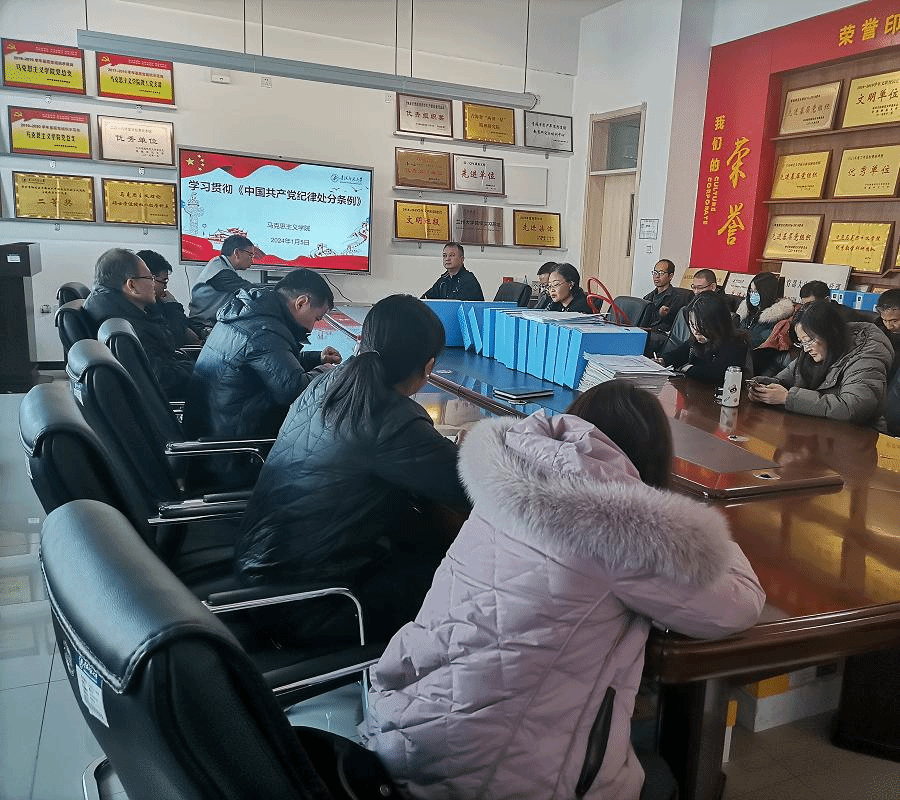 1月5日上午,beat365在线官网入口在会议室召开全体教师大会,组织学习贯彻《中国共产党纪律处分条例》,会议由党总支书记李姝睿主持。