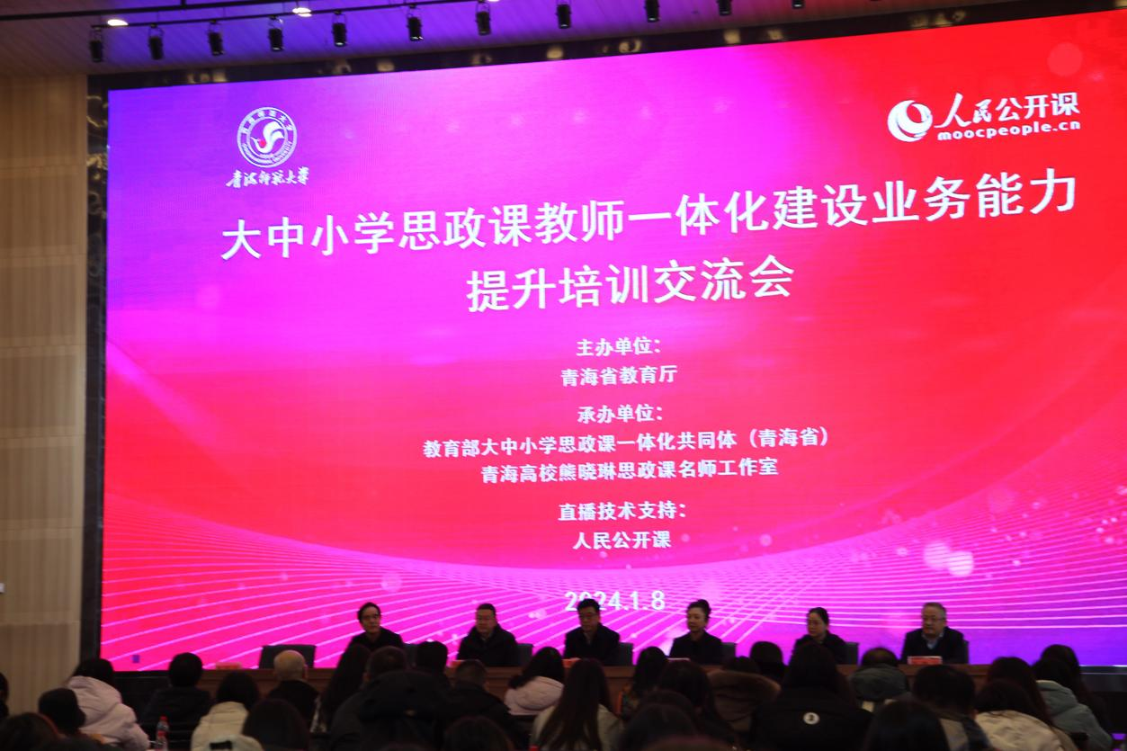 2024年1月8日,青海省大中小学思政课教师一体化建设业务能力提升培训会在beat365城北校区成功举办。本次培训交流会由省教育厅主办,教育部大中小学思政课一体化共同体(青海省)、青海省高校熊晓琳思政课名师工作室联合联合承办,同时人民公开课提供全程直播和技术支持。来自青海省大中小学思政课一体化建设指导专家组成员、教育部大中小学思政课一体化共同体(青海省)共建单位思政课教师、青海大学、青海民族大学、青海交通职业技术公司分别牵头的省级大中小学思政课一体化共同体共建单位思政课教师、2023年获批省教育厅思政研究专项项目以及大中小学思政课一体化共同体项目的课题组成员,西宁市部分中小学思政课教师,以及beat365在线官网入口部分教师、研究生和本科生共250多名师生参加线下会议,线上有6000多人次登录直播系统观看了培训交流会。