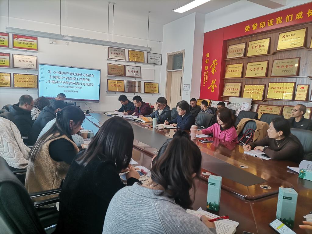 李姝睿要求全体教师严守政治纪律和政治规矩,遵守网络行为规范,发挥马院教师先锋模范作用,营造健康向上、风清气正的网络环境。各党支部要把《条例》纳入党员干部学习计划,组织专题学习,持续推动《条例》学习常态化,全面准确理解《条例》的深刻内涵,严肃党内政治生活。