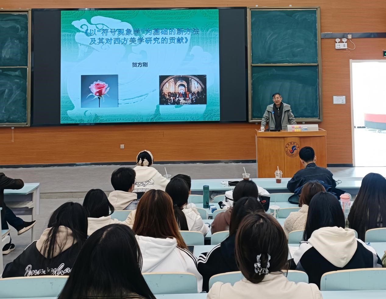 讲座由经理方立江教授主持,崔治忠教授点评。点评指出,贺方刚博士以丰厚的文化知识和独特的视角使广大师生对符号现象学与传统二元论美学的交叉与融合有了全新的认识。这种融合有助于我们更好地理解艺术、伦理、政治等多个领域的问题,也在一定程度上拓展了我们的视野。同学们纷纷表示,讲座内容丰富,讲授方式生动,有助于培养员工的批判性思维和创新精神,和跨文化交流能力,大家表示受益匪浅。