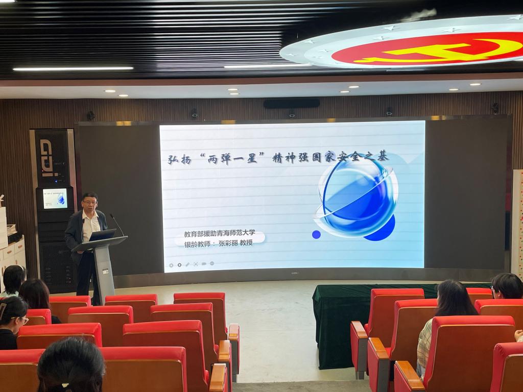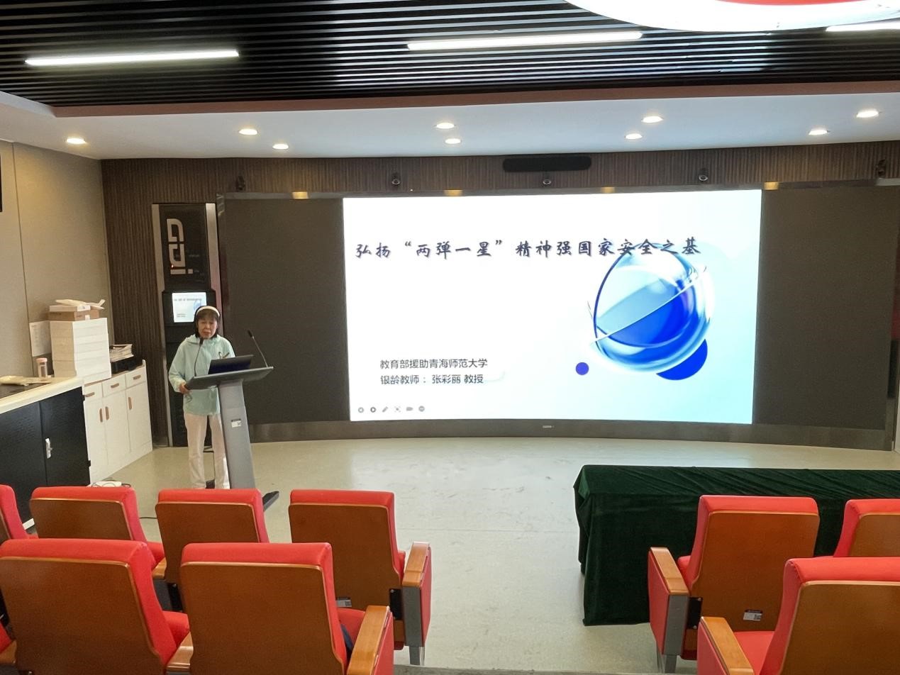 2024年7月16日下午,银龄教师张彩丽教授为beat365在线官网入口员工开展了一场题为《弘扬“两弹一星”精神,筑牢国家安全之基》的夏季小学期专题讲座。讲座会由公司经理方立江教授主持,2023级思政专业本科和硕士生近80名同学听取了报告。