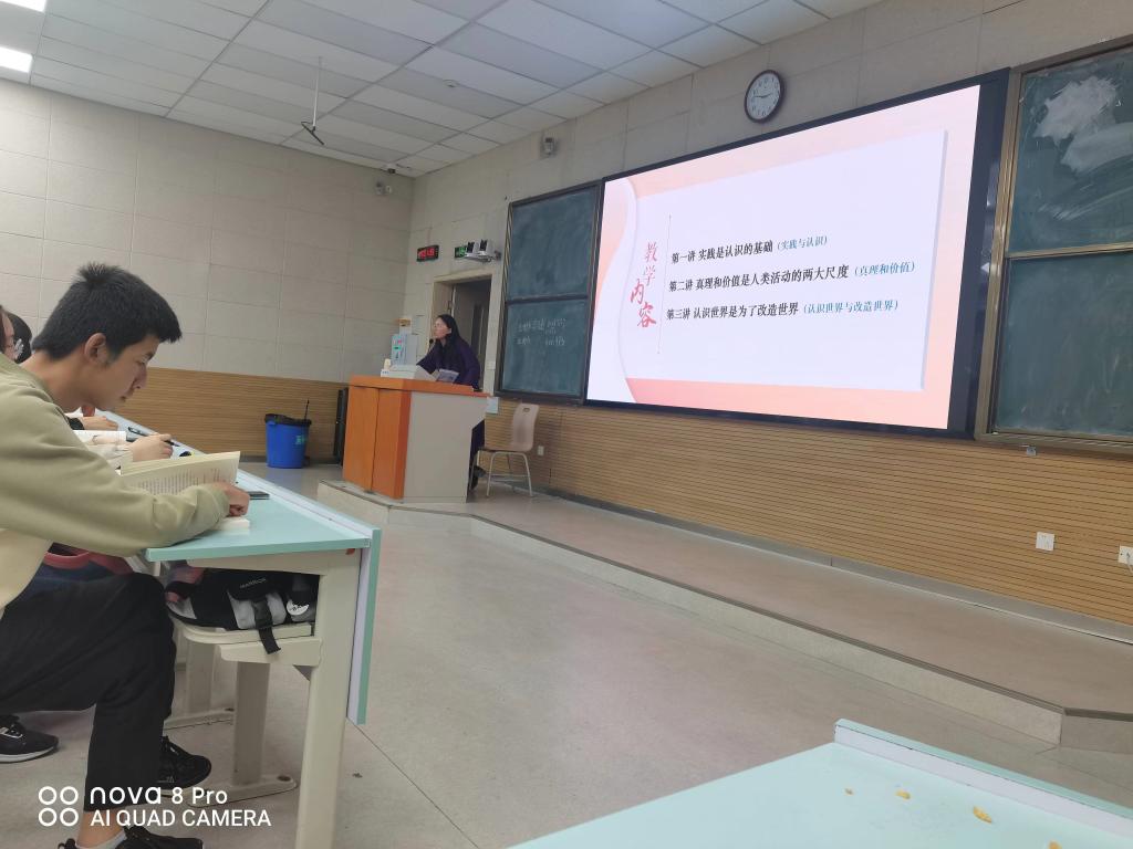 第一次听课活动在东一楼F107教室展开,陈嘉丽老师面向2023级少数民族语言、应急管理、应用化学专业员工讲授《事物的普遍联系和变化发展》内容,第二次听课活动在东二楼F107教室开展,格日措老师面向2023级民族师范公司物理、英语和数学专业员工讲授《唯物辩证法是认识世界和改造世界的根本方法》内容。第三次对次珠拉姆老师的授课展开听课。