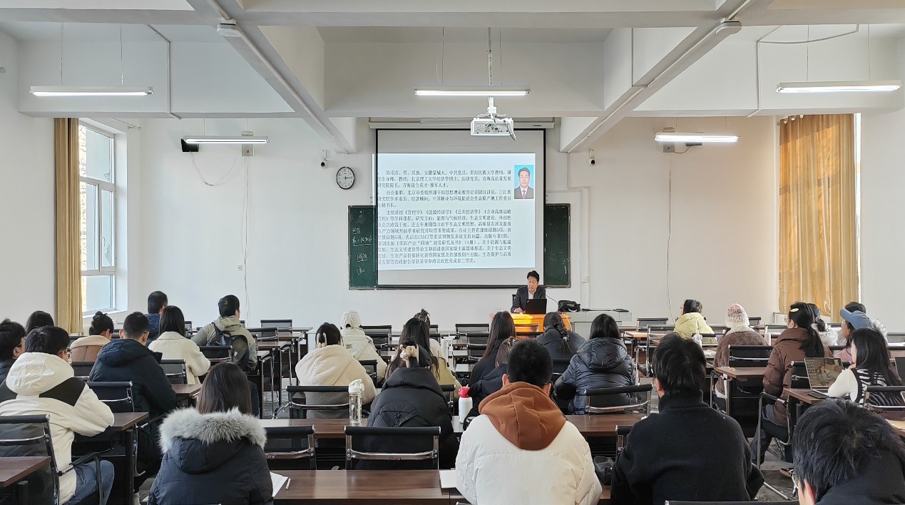 2024年11月28日上午,毛泽东思想和中国特色社会主义理论教研部邀请青海高质量发展研究院副经理、青海民族大学副教授、青海昆仑英才.领军人才、北京理工大学经济学博士陈昭彦,走进了《新时代中国特色社会主义理论与实践》课堂,做了题为“青海生态文明建设理论及实践——习近平生态文明思想和青海实践”的专题讲座。2024级计算机科学与技术、中国史、软件工程、法学、社会学专业的硕士研究生及任课教师聆听了本次讲座。