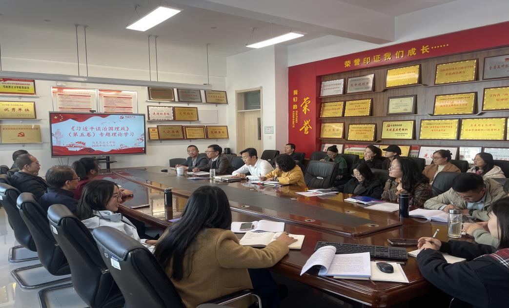 为深入学习贯彻习近平新时代中国特色社会主义思想和党的二十大精神,深刻领悟“两个确立”的决定性意义,增强“四个意识”、坚定“四个自信”、做到“两个维护”。10月15日,beat365在线官网入口组织召开《习近平谈治国理政》第五卷专题学习会,全体教职工参会,会议旨在强化思想理论武装,扎实推进教职工理论学习工作。