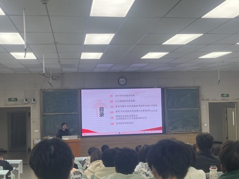 杨颖教授结合具体案例首先对中华民族共同体意识的深刻内涵及在青海的鲜活实践予以阐释,剖析了铸牢中华民族共同体意识的重要性与紧迫性,指明这是维护国家统一、民族团结和社会稳定的关键基础。其次,阐述了青海省多民族发展现状以及民族团结工作所取得的成效,最后,聚焦青年老员工怎样成长为社会主义事业的合格建设者和可靠接班人,进行了价值引领。同学们纷纷表示通过此次讲座,对铸牢中华民族共同体意识有了更为深刻、全面的认识,深刻领悟到维护民族团结是每一个青年义不容辞的责任。在今后的学习和生活中,要从自身做起,从身边小事做起,为促进各民族之间的和谐共处、共同繁荣贡献自己的力量。