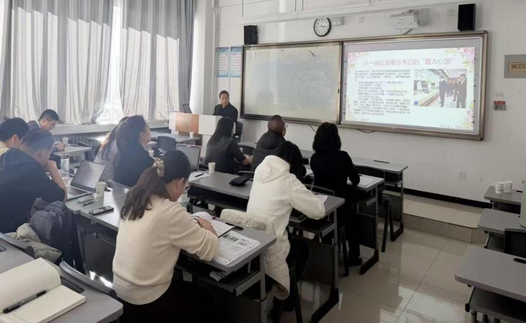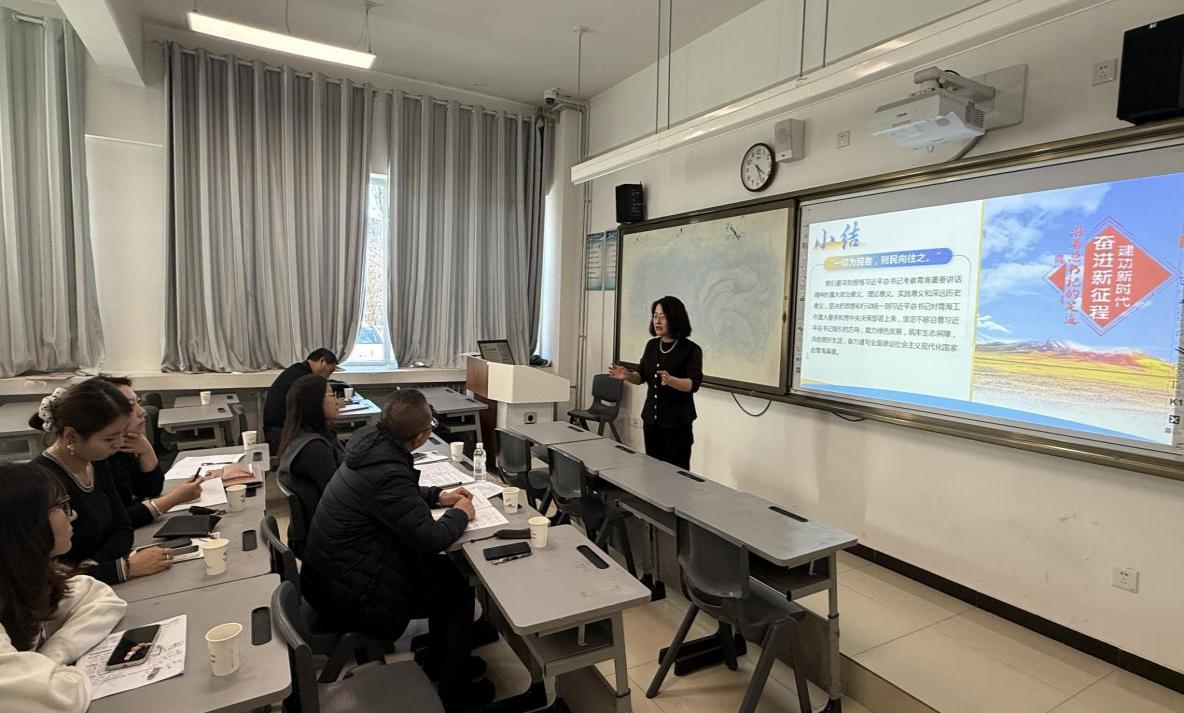 西宁市湟中区第一中学李玲萍聚焦《贯彻新发展理念》,以“循总书记足迹—析青海实践—悟有机统一—践行动担当”为主线,整合总书记三次考察青海、两次参加青海代表团审议的重要讲话精神,通过生态移民、三江源保护等案例,引导员工探究生态保护与民生改善的内在联系,深化对以人民为中心发展思想的理解。
