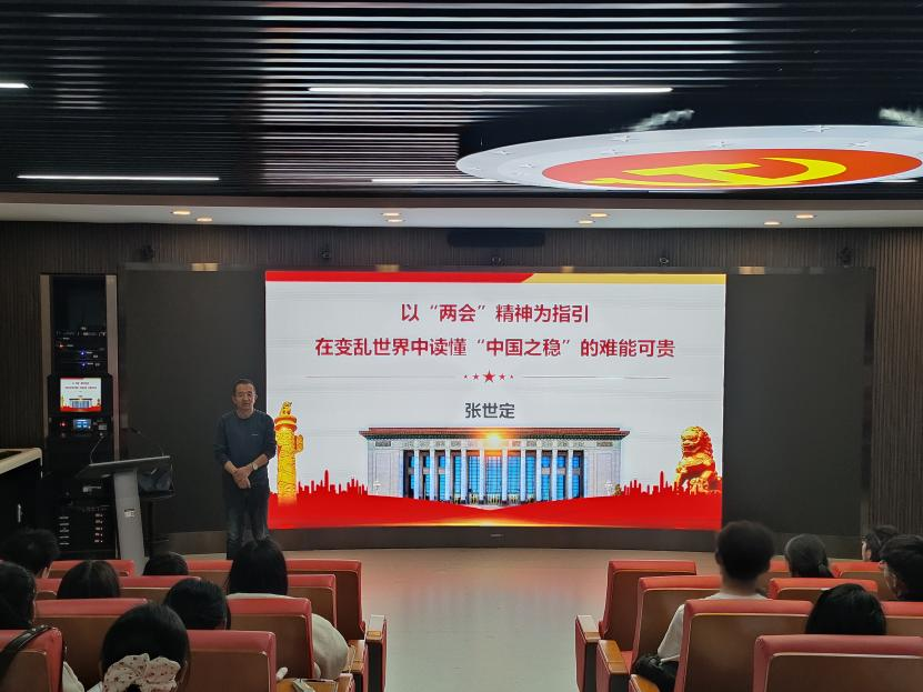 讲授以习近平总书记说过的“我们的目标很宏伟,也很朴素,归根到底就是让老百姓过上更好的日子”为切入点,向同学们介绍了什么是全国“两会”以及今年的全国“两会”干了什么,紧接着结合当前的国际形势,讲解了在变乱世界中读懂“中国之稳”的难能可贵之处。