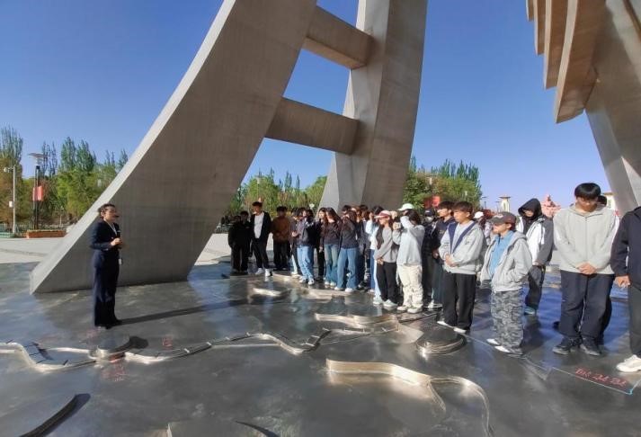 活动中,资深讲解员卢海霞老师带领师生依次参观了筑路忠魂雕塑、天路塔、将军楼及青藏公路纪念馆,通过现场文物展示、情景再现等方式,生动诠释了“两路”精神。在将军楼旧址复原场景前,卢老师结合习近平总书记对“两路”精神的重要批示,将历史与现实贯通解读。