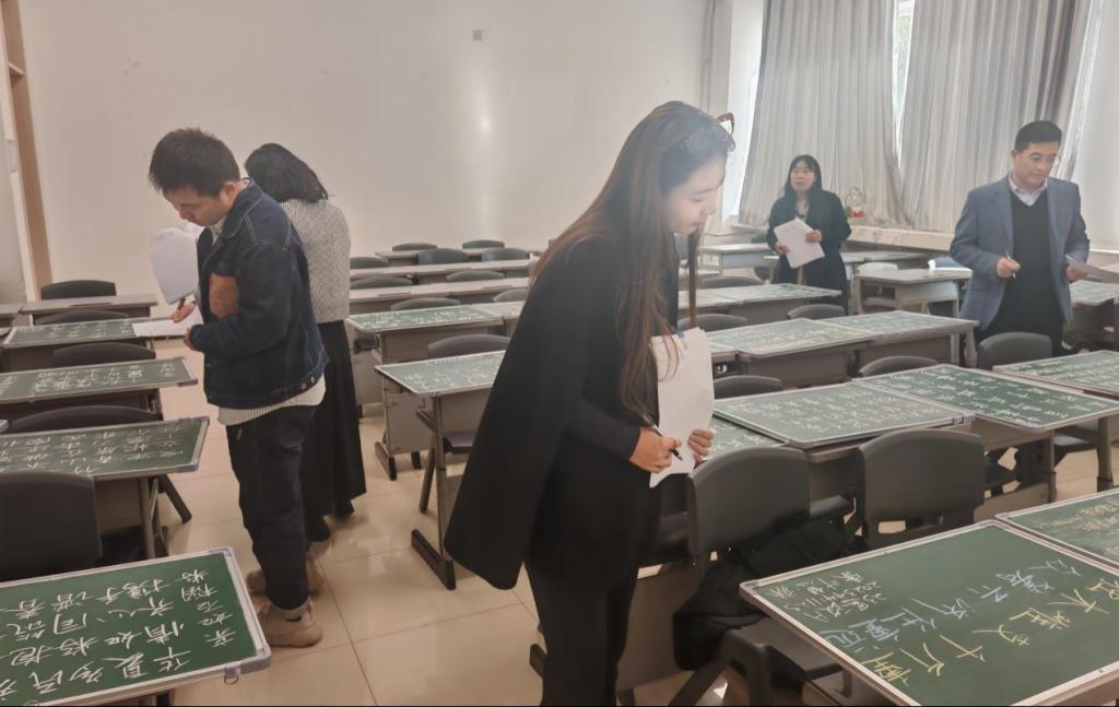本次活动由高莉苹、张训萌、王秀芳、魏世友、王晶五位专业教师组成评委团。评选现场,评委们不仅从粉笔字的笔画规范、结构布局,手抄报的主题契合度、设计创意等维度评分,更特别关注作品中对铸牢中华民族共同体意识的呈现深度。最终公平公正确定各项目获奖名单,粉笔字一等奖松秋卓尕;二等奖王靖宇、林乃菊;三等奖郭鑫文、梁贵珊、袁娇娇。手抄报一等奖李海婷;二等奖陈颖墨、周慧姝琳;三等奖才仁忠尕、李青玲、曹佳楹。此外,部分同学的毛笔字与硬笔书法项目进入决赛。