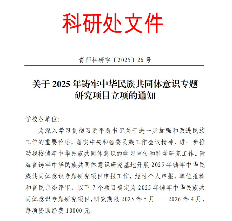 公司获批2025年铸牢中华民族共同体意识专题研究项目1项