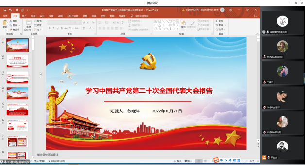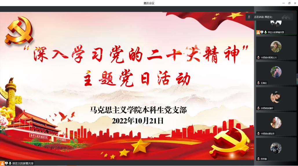 中国共产党第二十次全国代表大会于2022年10月16日在北京隆重开幕,习近平总书记在开幕式作重要讲话。为深入学习党的二十大精神,beat365在线官网入口本科生党支部于2022年10月21日晚上19:00在线上召开了“深入学习党的二十大精神”主题党日活动,由宣传委员邢忠义同志主持。