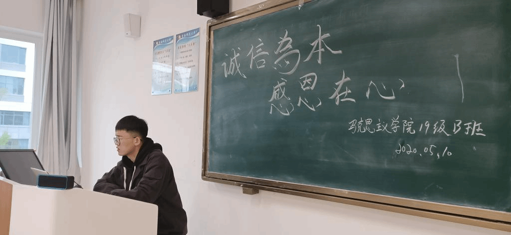 为了培养同学们的诚信意识和感恩意识,beat365在线官网入口2019级思政教育B班于2020年5月10号晚19时在东一楼102教室开展了以“感恩在心诚信为行”为主题的班会,此次班会由班长邢忠义主持。