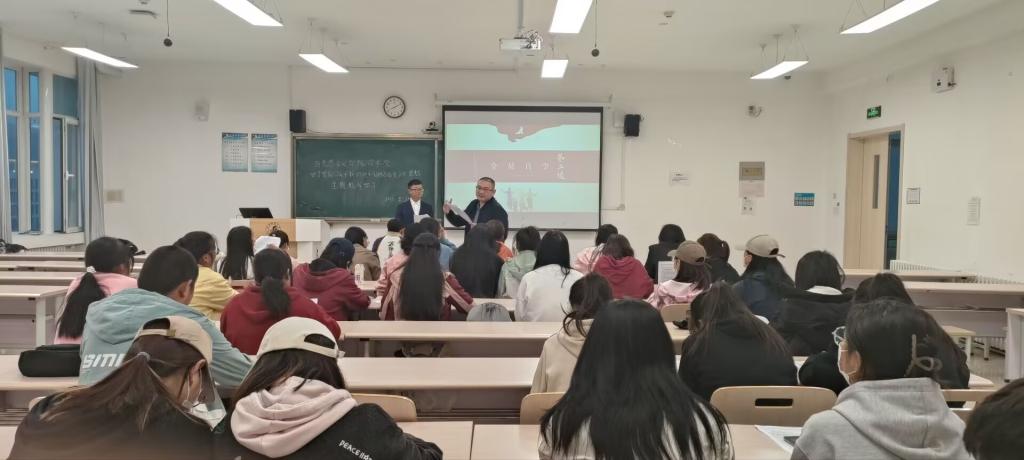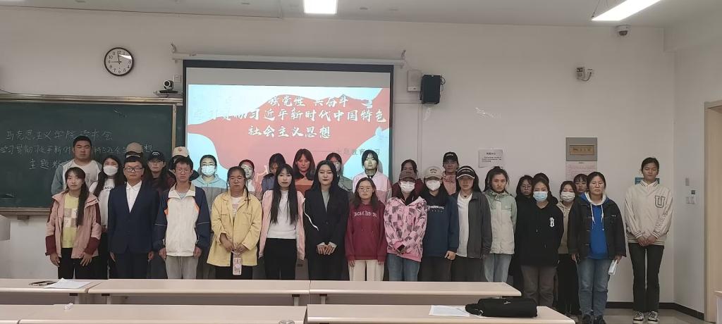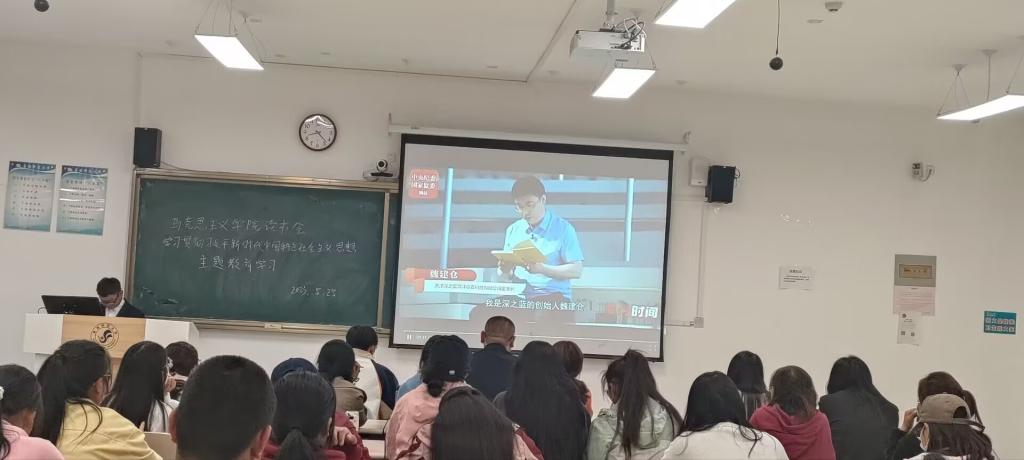 在领学环节,张冉同学就党和国家开展本次主题教育的重大意义和目标要求,作了“学思想,践初心”的主题演讲,向同学们介绍了“开展党内集中教育是我们党加强自身建设的重要经验”、“青海省扎实推进主题教育见行见效”以及“以学铸魂,坚定理想信念”三个方面的内容,告诉同学们要牢牢把握主题教育中提到的“学思想、强党性、重实践、建新功”的总要求和坚持“学思用贯通、知信行统一”的根本任务,深入学习贯彻习近平新时代中国特色社会主义思想的科学内涵,并将其内化于心,外化于行。