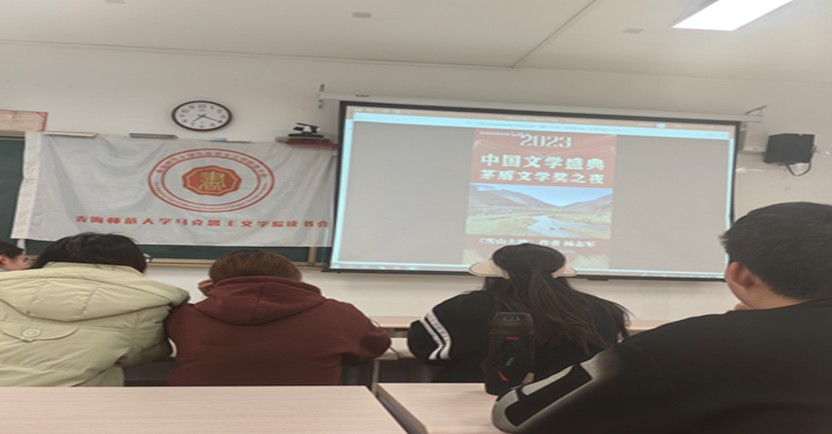 活动先由高银萍同学介绍了小说的发展历史、中外小说比较、茅盾文学奖等文学常识。接着从作者介绍、本书简介、读后感、好句摘录等几个方面分享了杨志军的长篇小说《雪山大地》。这本书主要围绕中国城市化进程,关注“藏地高原”牧民60多年来的生活变迁史,将时代大潮与牧民日常生活的变迁相融,记录了援藏父辈将个人历史融入国家建设以及汉藏民族融合的过程。是一部各民族共同谱写中华民族共同精神家园的佳作。